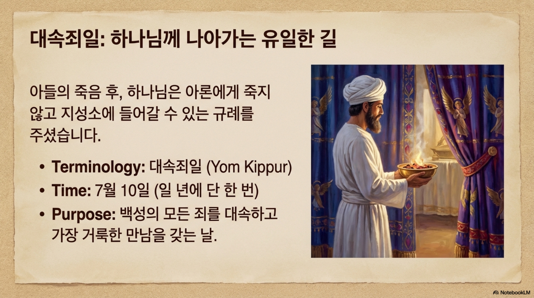사진자료1: 나답과 아비후의 죽음 1 : 사진자료 2: 대속죄일 아사셀의 염소