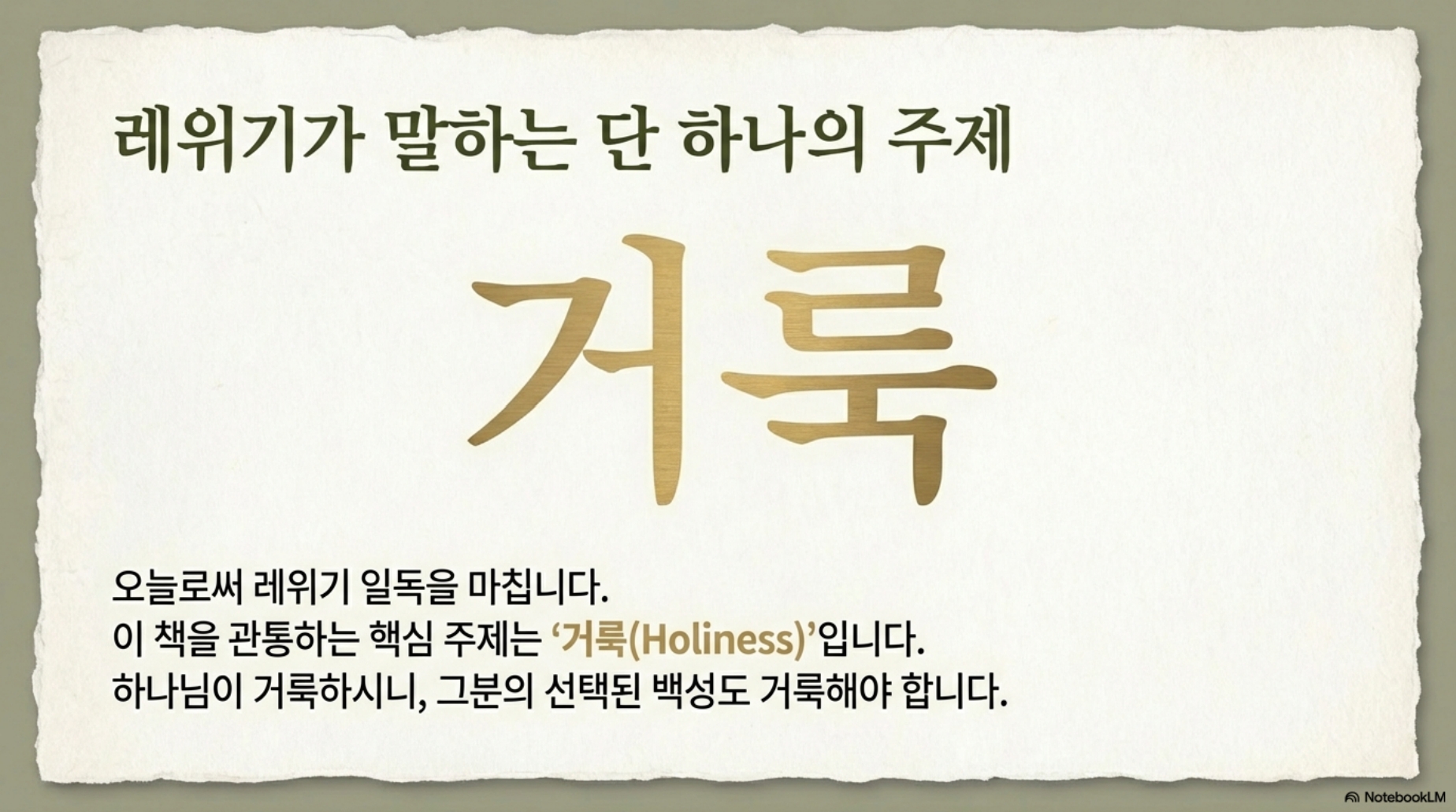 마치게 됩니다. 레위기의 주제는 거룩입니다. 하나님의 선택된
