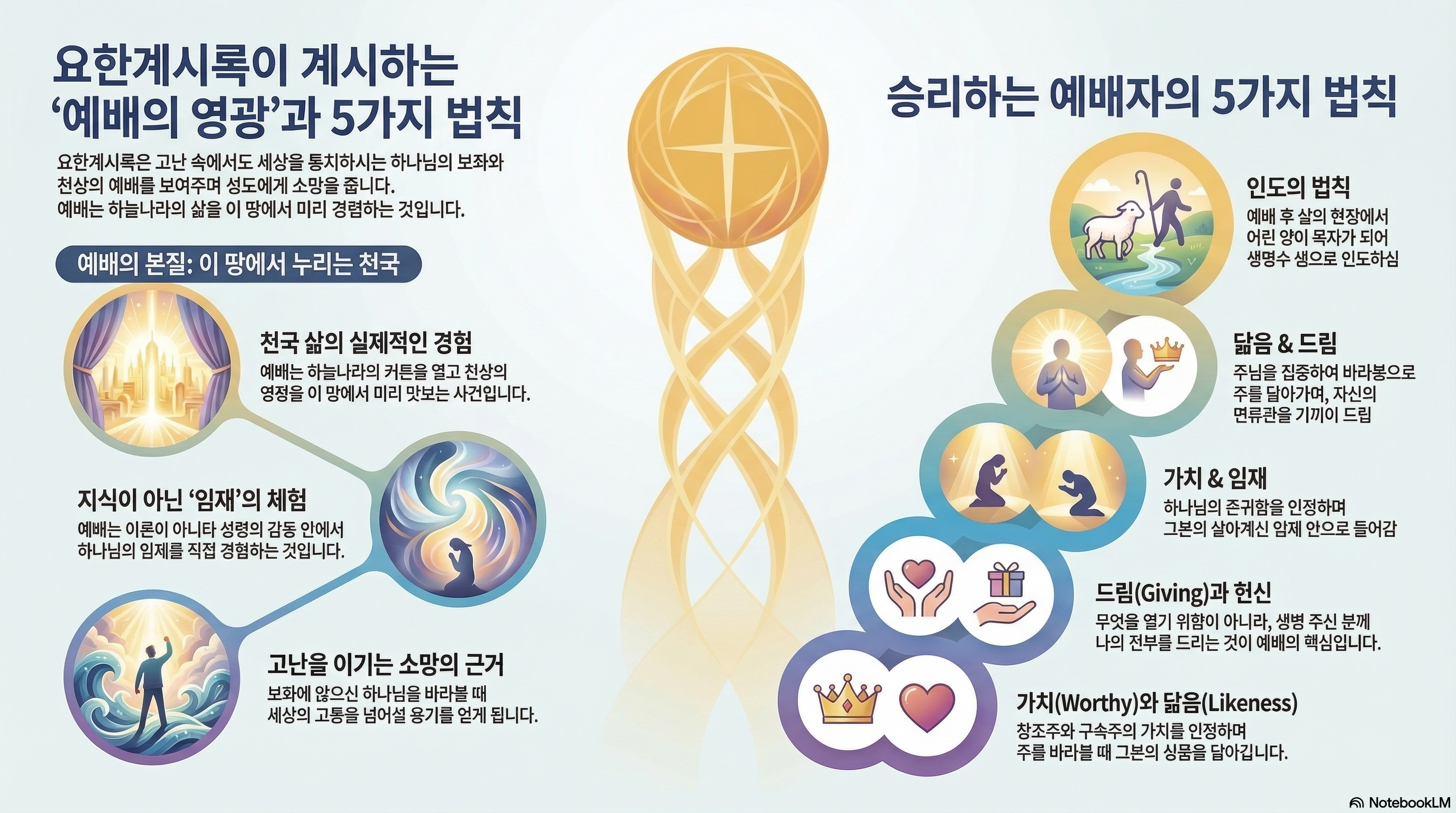 [성경본문] 요한계시록4:8-11절 개역개정8. 네 생물은 각각 여섯 날개를 가졌고 그 안과 주위에는 눈들이 가득하더라 그들이 밤낮 쉬지 않고 이르기를 거룩하다 거룩하다 거룩하다 주 하나님 곧 전능하신 이여 전에도 계셨고 이제도 계시고 장차 오실 이시라 하고 9. 그 생물들이 보좌에 앉으사 세세토록 살아 계시는 이에게 영광과 존귀와 감사를 돌릴 때에 10. 이십사 장로들이 보좌에 앉으신 이 앞에 엎드려 세세토록 살아 계시는 이에게 경배하고 자기의 관을 보좌 앞에 드리며 이르되 11. 우리 주 하나님이여 영광과 존귀와 권능을 받으시는 것이 합당하오니 주께서 만물을 지으신지라 만물이 주의 뜻대로 있었고 또 지으심을 받았나이다 하더라
