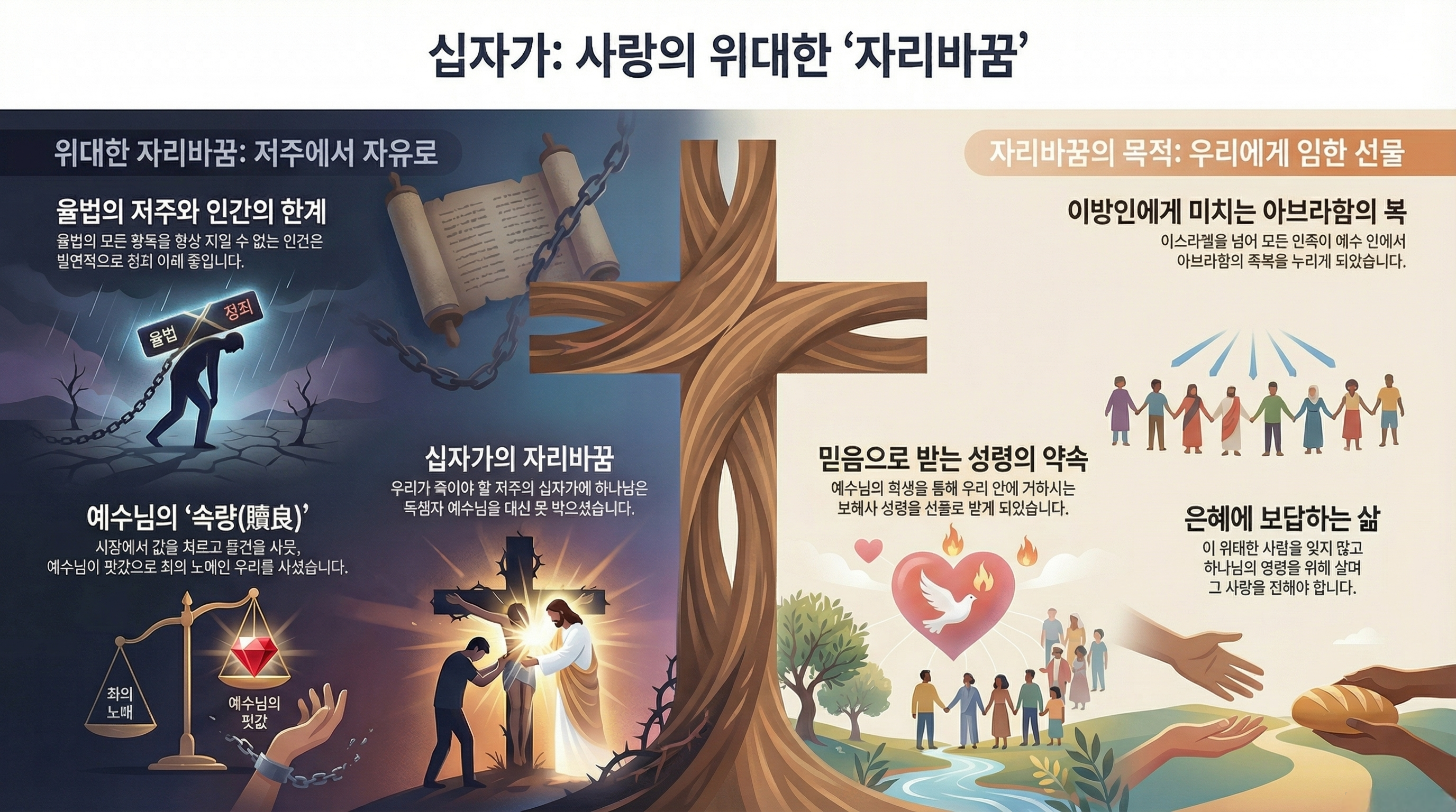 - 13. 그리스도께서 우리를 위하여 저주를 받은 바 되사 율법의 저주에서 우리를 속량하셨으니 기록된 바 나무에 달린 자마다 저주 아래에 있는 자라 하였음이라