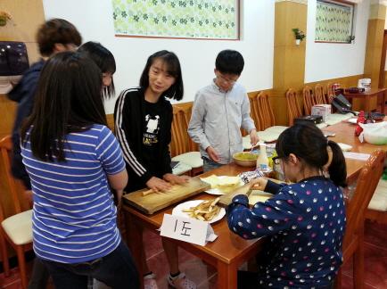 5월16일 오후3시에 새가족 초청 및 중고등부 단합을 위한 한끼요리대회를 열었습니다. 선생님과 아이들이 함께 4조로 나누어 선택한 메뉴에 따른 준비된 제료를 가지고 오후 3시부터 한시간 동안 새로온 친구 2명과 함께 즐겁고 재미있는 시간을 가졌습니다.